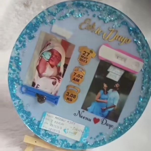• Each piece contains a delicate arrangement and  preserved baby keepsakes , encased in high-quality resin